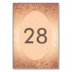 Carte de numéro de table mariage moderne fleurie or et pêche