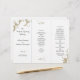 White tri-fold wedding program with gold leafy flourish. Customize with black text in three sections, which will be the front, order of ceremony, and wedding party sections. Then fold accordion style / z-fold / tri-fold, after purchase. Please NOTE: Changing the paper type may make this difficult to fold.