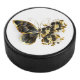Or flower butterfly with black jewelry orchid, decorated with gold leaves on white background.