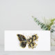 Gold flower butterfly with black jewellery orchid, decorated with gold leaves on white background.