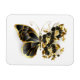 Gold flower butterfly with black jewelry orchid, decorated with gold leaves on white background.