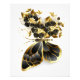 Gold flower butterfly with black jewellery orchid, decorated with gold leaves on white background.