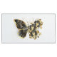 Gold flower butterfly with black jewellery orchid, decorated with gold leaves on white background.