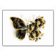 Gold flower butterfly with black jewellery orchid, decorated with gold leaves on white background.