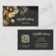 Aesthetic golden flowers on a black background with an elegant handwritten script. Perfect for make up artists, beauty, salon, hair and makeup, florists....