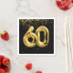 Gold mylar party balloons on black with gold star confetti for 60th birthday.