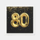 Gold mylar party balloons on black with gold star confetti for 80th birthday.