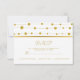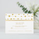 Gold foil beads and stripe modern wedding RSVP response or reply card featuring a pattern of string with gold foil balls with metallic shine on the top that look like beads on rope and a golden stripe on white background. This elegant and stylish wedding template design is fully customizable and is perfect for a contemporary wedding. Note that THERE IS NOT REAL GOLD FOIL JUST PRINTED IMAGES.