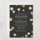 Chic black and gold engagement party invitation features faux foil gold confetti dots.