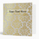 The beautiful all over design of Damask rendered as though in gold foil. A glass like area for your personal text. This is an image and not actual gold foil.