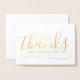 The classy and elegant way to thank family and friends for attending your special day, event, or celebratory milestone, this card features a handwritten "thanks" in gold foil on the cover and special message of appreciation for guests on the inner panels on a golden gradient background. Customize text and visual elements of front, inner, and back panels as desired.
