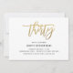 Cette invitation de fête de 30e anniversaire comporte un texte "trente" de feuille d'or accrocheur. Veuillez noter que la feuille d'or n'est qu'une texture, pas une vraie feuille. Pour une personnalisation plus avancée de cette conception, par exemple la modification de la disposition, de la police ou de la taille du texte, cliquez sur le bouton "PERSONNALISER" ci-dessus. Veuillez me contacter pour toute question !