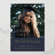 This graduation announcement features a large photo and a clever message of gratitude. The announcement reads "Filled with GRADitude" and includes a thank you and "signature" in a handwriting font. The real gold foil text adds an extra dose of sophistication to this graduation announcement. The navy background can be modified to match your school colours. The back has an additional photo and space for a message or more details. This graduation announcement works especially well for those completing advanced degrees to share their appreciation for the support they've received over the course of their studies.
