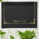 Gold foil (faux, printed as an image) Great Gatsby Art Deco cloth guest towels with customizable text, printed on black background