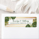 Celebrate in style with these stylish and very trendy wedding return address labels. The design features a chic striped white and gold foil effect background with tropical palm leaves and matching wording in a deep shade of green... stunning and simply perfect for any couple planning a destination or beach themed wedding celebration. This design is easy to personalize with your special event wording and your guests will be thrilled when they receive these fabulous labels.