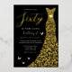 Gold Foil Heart Gown Black 60th Birthday Party Foil Invitation