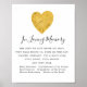 A wedding memorial sign that can be placed on a table display. It features a gold heart, a memorial sentiment and then a list of those to be remembered.
