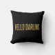 This cute, fun and modern throw pillow features gold, bling text that reads Hello Darling.