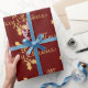 Fun custom red Christmas gift wrapping paper with pretty gold foil look holly leaves and berries