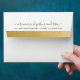 A fun trendy calligraphy script font with swashes and trailing letters on a white envelope with a gold minimalist stripe on the back flap, and faux gold foil pattern printed on the inside, perfect for an elegant wedding or party invitation or beautiful personalized stationery set. You can change the colour of the envelope using the colour picker below.