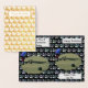 Pictured are black lawn bowls and jack pattern background, with a lawn bowler and birthday message