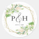 Gold Foil Monogram Geometric Greenery Wedding Classic Round Sticker