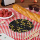 Sweet 16 is all about customizing for my girls. These plates arrived with a little tear on the edge but I had no problem with customer service item was expedited and arrive in perfect condition We love our denim and diamonds customized plates. The denim color is spot on. I love the font Cannot wait to show these off at the party. Thank you for bringing my daughters theme alive