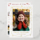 Charming white and gold photo Christmas card with your family photo and a scribbled frame with loops, Christmas baubles, and stars as a gold foil overlay. Add three photos from this year's highlights on the back, which also features matching scribbles red against a white background. Add in total four photos to this double-sided Merry Christmas card with details printed in gold foil. Change to silver foil or rose gold foil, if desired!