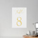 Simple and chic table number cards in white with gold foil lettering make an elegant statement at your wedding or event. Design features handwritten calligraphy script lettering with your table number in classic numerals. Single-sided print is intended to be placed in a tabletop frame as shown.