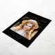 Elegant graduation thank you card featuring "Thank You" in gold foil calligraphy script with the graduate's photo displayed below on a black background. Personalize the photo graduation thank you card with the graduate's name, school name, and graduation year. The back of the thank you card features space for a typed or handwritten message.