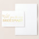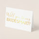 Real Gold Foil Script Typography Will You be My Bridesmaid? greeting card. This is the perfect real gold foil request for a bridesmaid.
