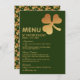 Gold Foil Shamrock, St Patrick's Day Menu Card