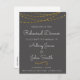 Faux Gold Foil String Lights and Handwritten Script Charcoal Grey Elegant Wedding Rehearsal Dinner Invitation.