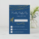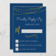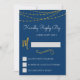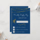 Gold Foil String Lights and Handwritten Script Navy Blue Elegant Wedding RSVP Reply Card.