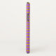 Features a stripe pattern in gold simulated foil, on a purple background. Personalize with initials.