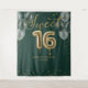 Gold Foil Sweet 16 Bday Balloons Green Backdrops Tapestry