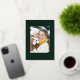 Celebrate the season with our modern trendy photo Christmas Card! This card has a white script photo design and a personal greeting message at the back.