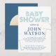 Invitation Parapluie Gold Foil Baby shower bleu et blanc