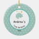 Gold Foliage Wreath | Baby First Christmas Blue Ceramic Ornament