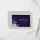 This wedding response card matches the Gold Frame Blue Boho Foral Wedding Invitations in our store. It features your custom text in light gold on a field of navy blue, and enclosed within a thin shiny gold frame. A blue floral embellishment, including a boho style pattern peacock feather, decorates the bottom left. Everything is placed on an elegant silver grey background. The back of the card has your custom text fields in dark blue on a matching silver background to make it easy for your respondent to mark.