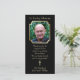 This sympathy thank you photo card features your loved one's photograph within a shiny gold ornate frame. There are four gold text fields that are easily customized. A simple gold cross separates your message from your signature. Everything is placed on a black background.