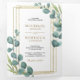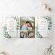 Gold Frame Eucalyptus Leaves Photo Collage Wedding Tri-Fold Invitation