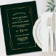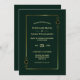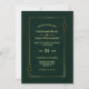 Invite your friends and loved ones to your wedding with this modern gold-framed green wedding invitation.