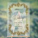 Islamic style wedding welcome sign featuring a gold ornate frame with 'Bismillah' in Arabic calligraphy.