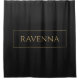 This personalized shower curtain features a deep black background with a custom name displayed in a classic gold serif font. A thin gold frame surrounding the name creates a balanced and elegant layout inspired by luxury interior style. The black and gold palette gives the design a bold yet refined bathroom look. The gold effect is printed colour only and does not contain real metallic shine. Personalize it with any name to create a unique bathroom accent that brings a modern luxury touch to your space.