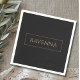 These personalized napkins feature a deep black background with a custom name displayed in a classic gold serif font. A thin gold frame around the name creates a refined luxury style that looks elegant on any celebration table. The black and gold colour palette is timeless and perfect for birthdays, weddings, anniversaries or formal events. The gold effect is printed colour only and does not contain real metallic shine. Personalize the design with any name to create stylish and memorable party details.