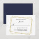 Stylish wedding response card done in white with graphic artwork of a skewed double gold glitter looking frame, with navy blue on back. Black text is ready to personalize, for your wedding. Matching products are available.