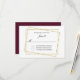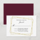 Stylish wedding response card done in white with graphic artwork of a skewed double gold glitter looking frame, with maroon on back. Black text is ready to personalize, for your wedding. Matching products are available.