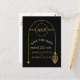 This modern wedding Save the Date postcard is sure to catch the eye, with its alluring gold frame which looks like a fine piece of wire jewellery. The initials of the couple are displayed against a dark backdrop, creating a dramatic effect. The frame is delicately embellished with a leaf detail on one side and an arrow on the other, delivering a sense of sophistication to the design. This exquisite postcard will be sure to make a lasting impression on all your guests.