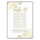 These beautiful table number cards feature a simple yet elegant design with gold script calligraphy on a white background with a frilly gold faux foil floral filigree in the corners. Each card has room for the names of 10 guests so they also function as a seating chart making it easy for people to find their tables at your wedding reception.